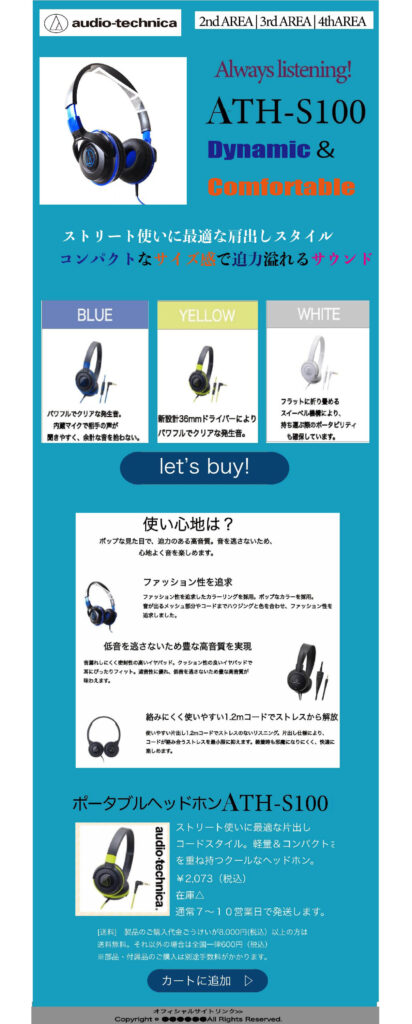 家でもよく使っている、Black-blueのAudio-tecnicaのヘッドフォンををデザインいたしました。
